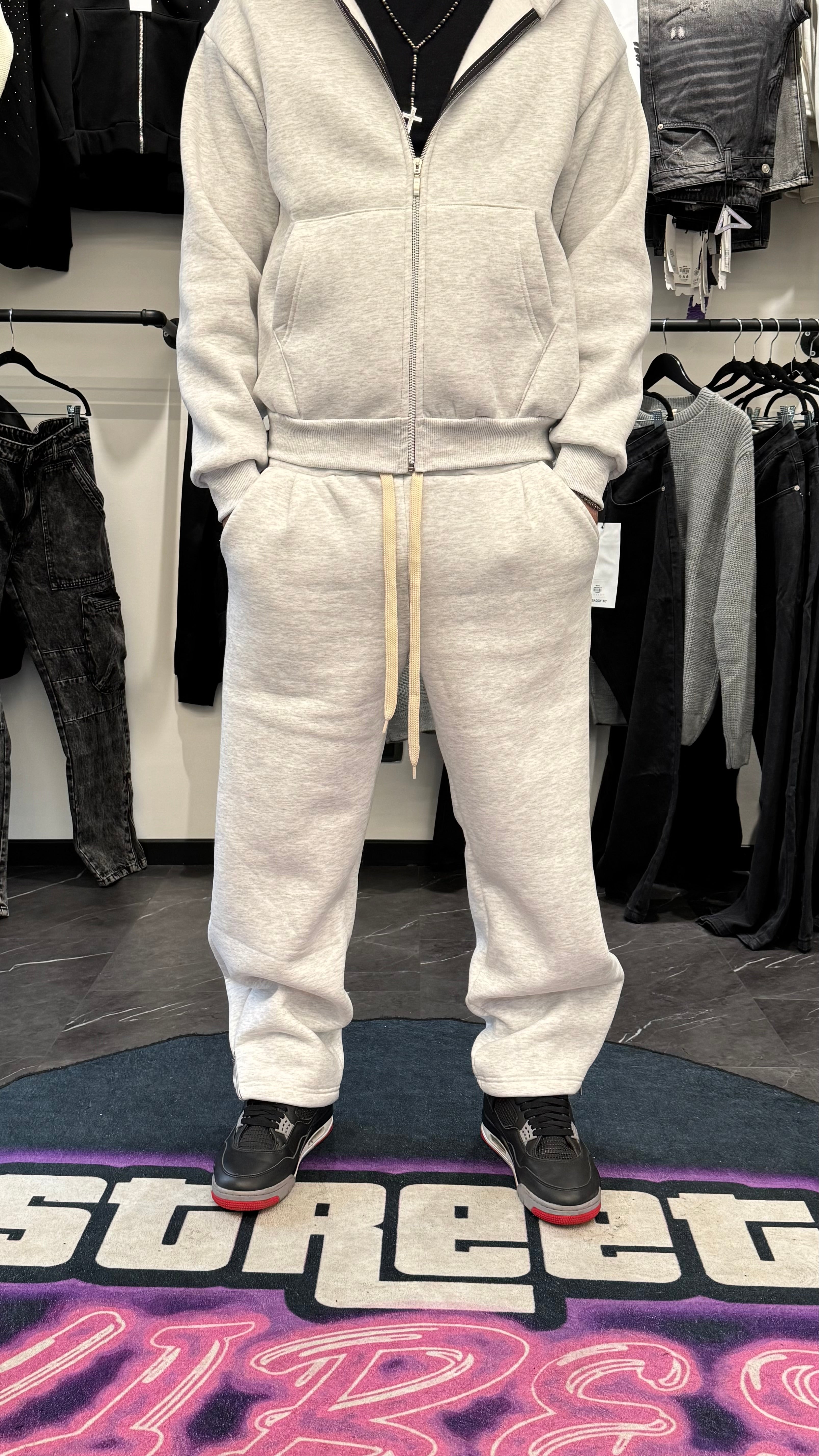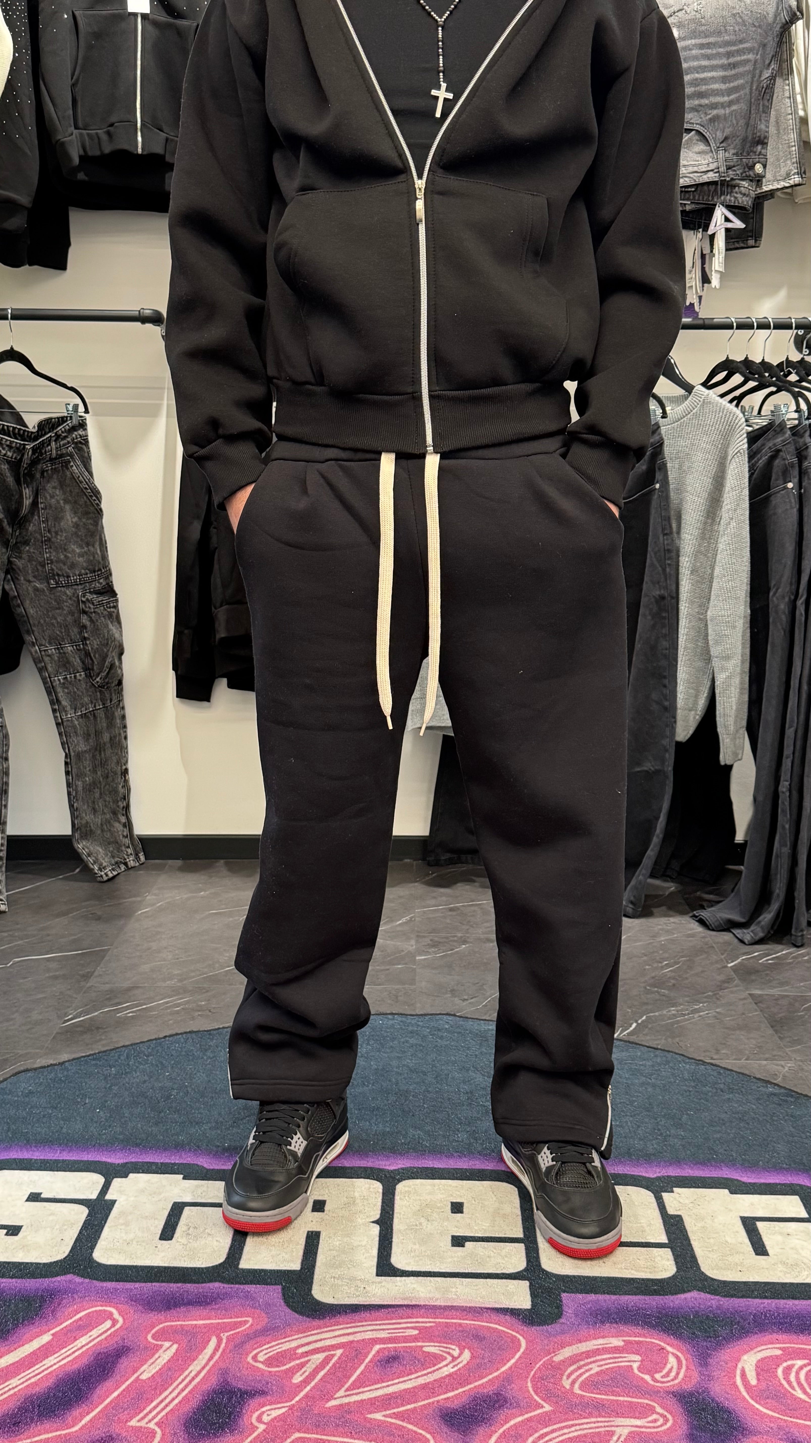 Realizzato in cotone morbido, questo pantatuta offre una comodità eccezionale e una sensazione naturale sulla pelle. La zip alla caviglia ti permette di scegliere se indossarlo più stretto o più largo, adattandolo al tuo stile. Perfetto per un look street pulito e quotidiano.